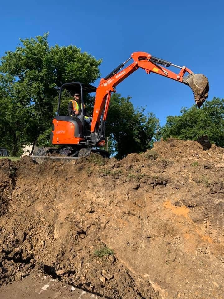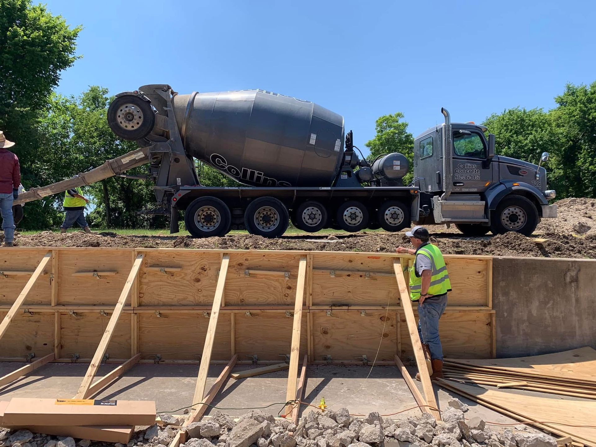 A new gravel bridge with wood planks, constructed in a wooded area. Heavy equipment visible in the distance.